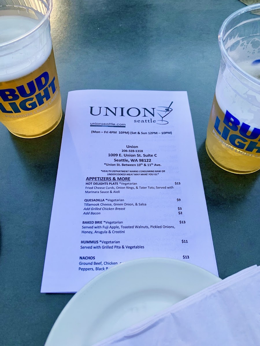 Union Seattle Menu